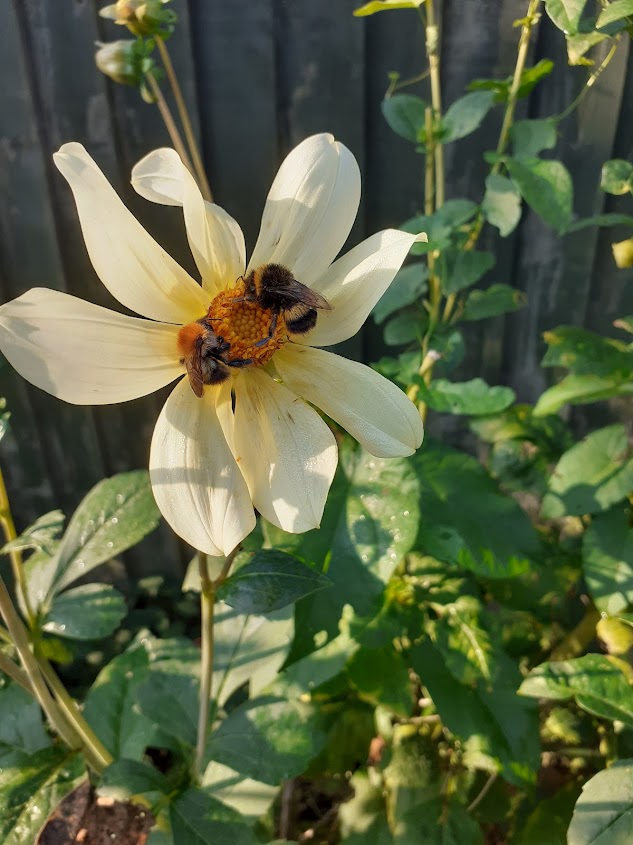 Try to include flowers with a variety of flower shapes, and have as long a flowering season as possible. By planting single flowers (like this dahlia), insects can easily access nectar.