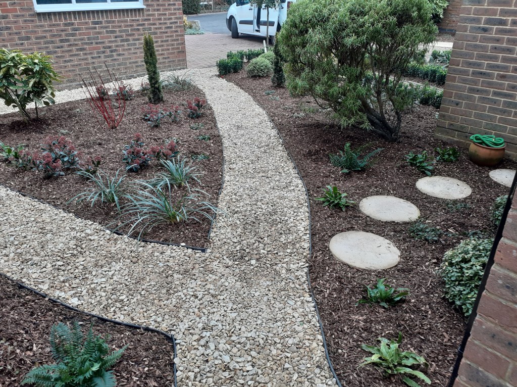 The Clients felt their North-facing front garden lacked impact, and the grass grew poorly.