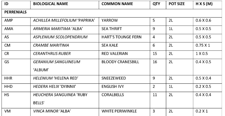 The output of this phase are concept drawings or artwork, with accompanying slides to show the garden layout including hard landscaping features, planting schemes, seating areas. At this stage, scale plans, bills of qualities, planting lists with quantities will not be included.