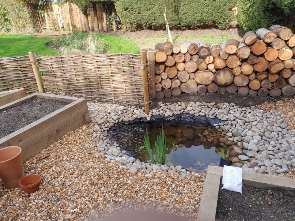 This created an area of meadow for birds and insects to enjoy, and connects to the log wall and pond.