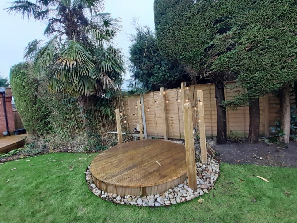 When our Clients bought their home, they inherited a generous garden laid entirely to faux grass and composite decking – both beyond salvation. The high hedges were imposing and the nature-loving owners wanted an attractive, family-safe space which allowed for entertaining, veg growing, and plenty of wildlife.