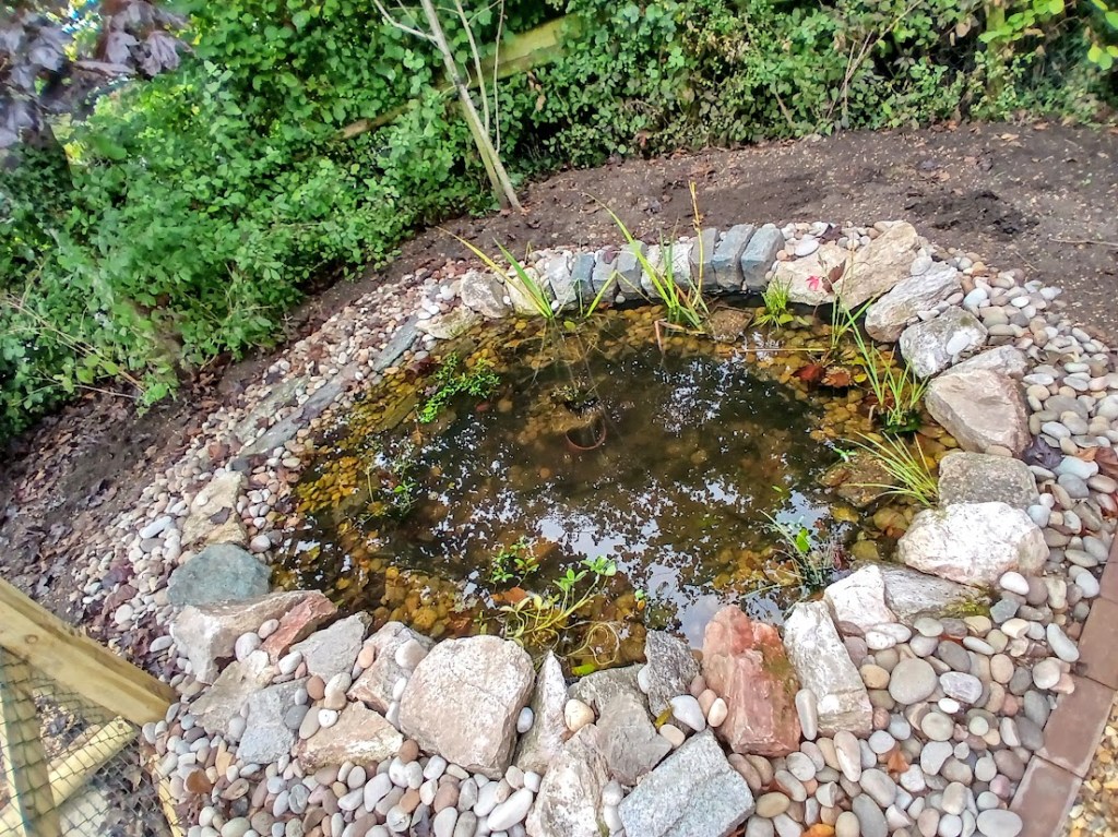 The wild pond is in this area – we reused slate, granite, and ragstones recovered in the clearance phase