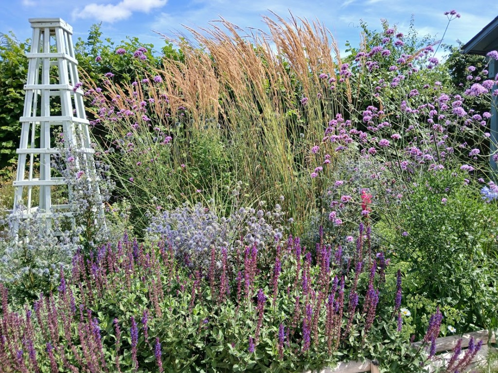 Damp-tolerant planting used at this end of the garden, where the ground becomes wetter in winter
