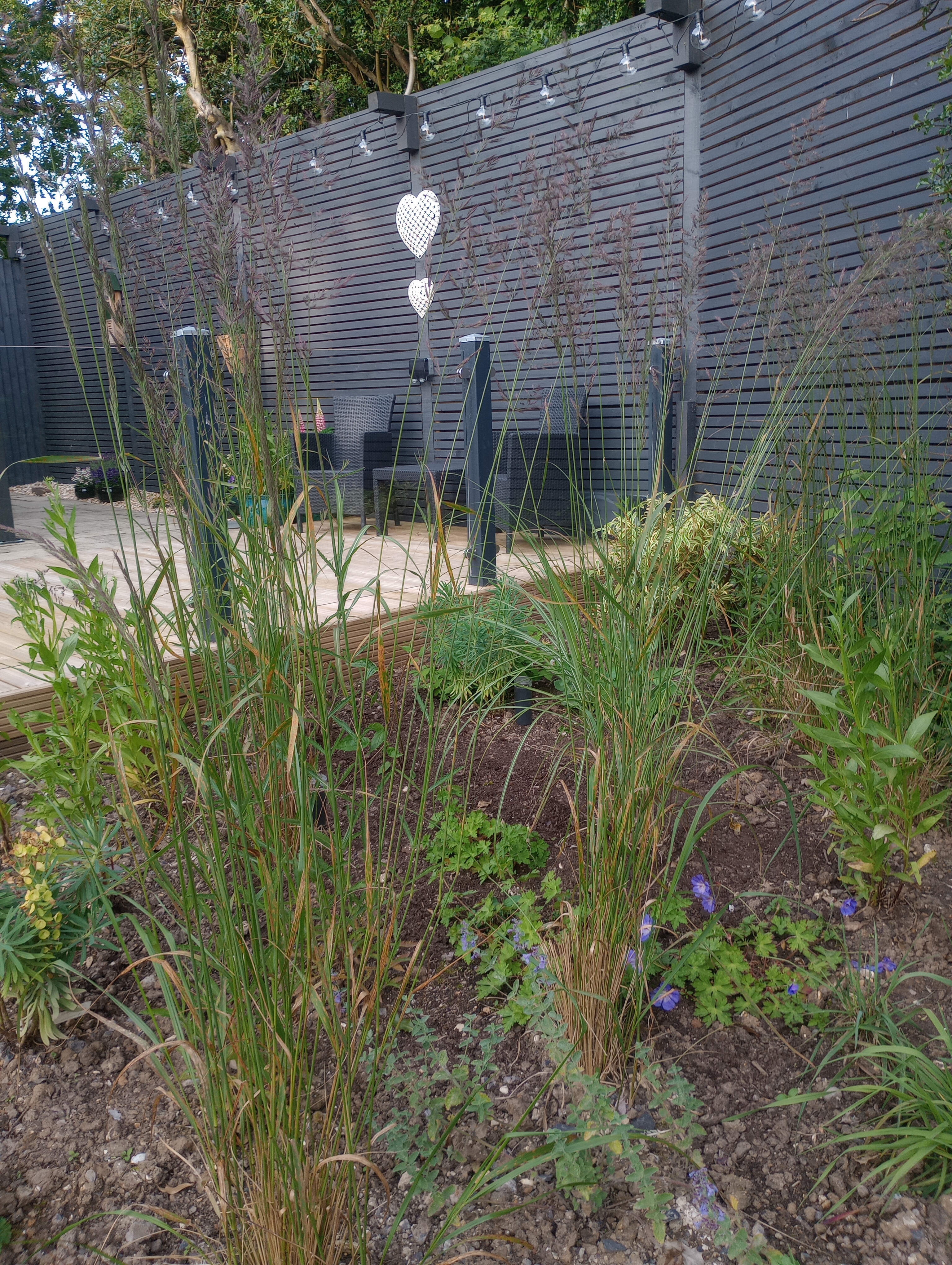 Generous mixed borders flank the boardwalk, providing easy care summer colour and scent